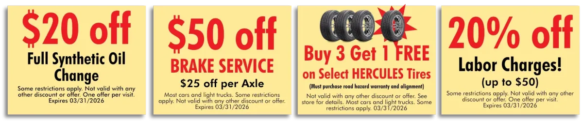 Not valid with any other discount or offer. See store for details. Most cars and light trucks. Some restrictions apply.